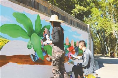 墙绘团队创作彩色墙绘扮美广西壮族自治区钦州市内的健身步道。