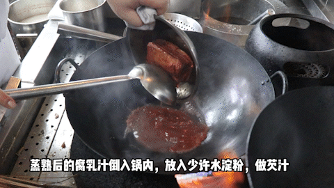 10.蒸熟后的腐乳汁倒入锅内,放入少许水淀粉,做芡汁