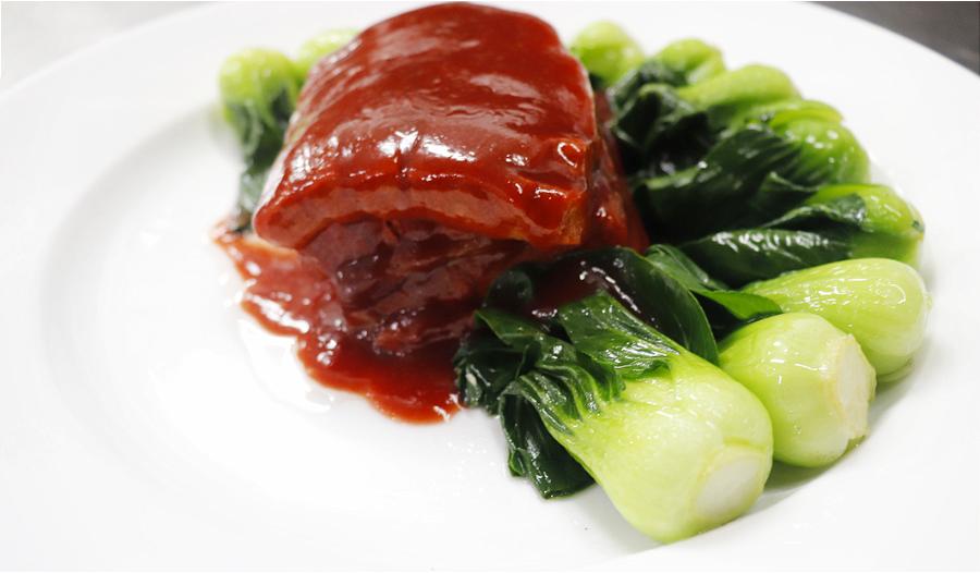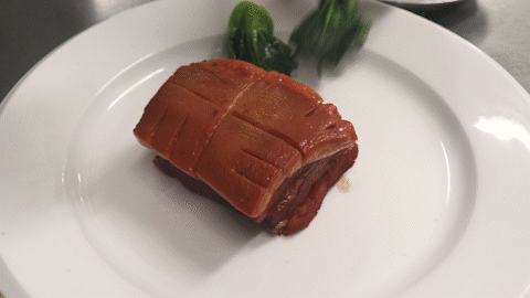 12.将勾好的芡汁浇在五花肉上,摆盘