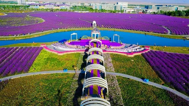 虽然地处戈壁与沙漠腹地,但满目炫紫的薰衣草、马鞭草、百媚千娇的郁金香、虞美人等各种争奇斗艳的紫荆花海,让金昌变成了一座浪漫的西部花城。