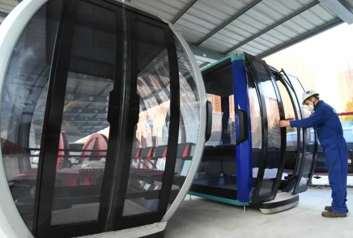 三河多贝玛亚运送系统有限公司生产车间,员工正在对索道专用吊厢进行检查。