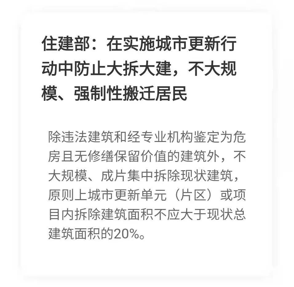 防止大拆大建,严格控制老城区改扩建、新建建筑规模和建设强度,不大规模、短时间拆迁城中村等城市连片旧区。
