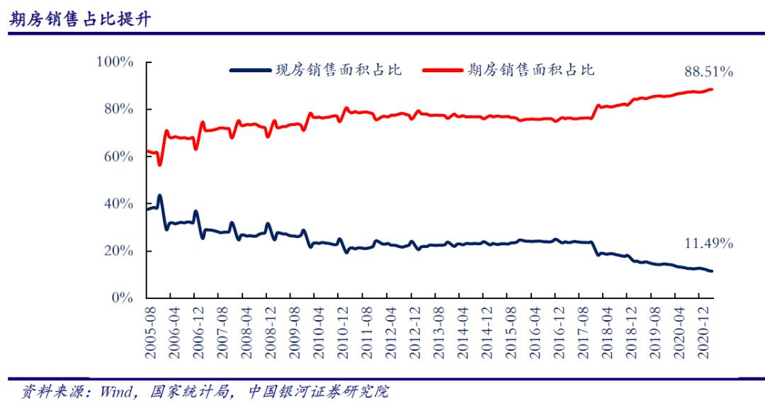 高周转模式,还带动期房占比的提升,期房越来越多,市场一旦下行,很容易遭遇烂尾风险。