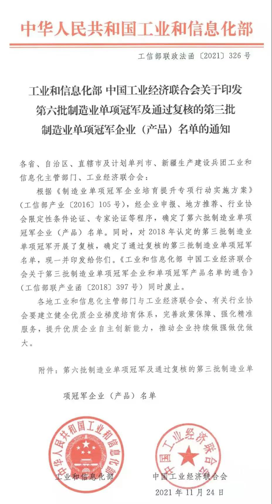 制造业单项冠军,是指长期专注于制造业某些特定细分产品市场,生产技术或工艺国际领先,单项产品市场占有率位居全球前三名的企业产品。评选活动旨在引导企业专注细分领域的创新、产品质量提升和品牌建设,突破关键领域短板,不断推出具有全球竞争力的产品。