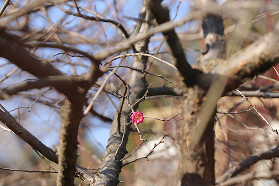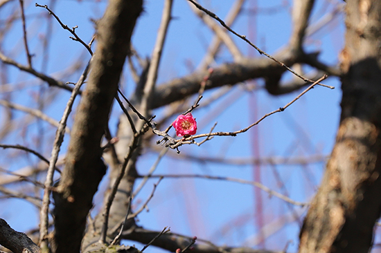 12月27日,岳庙管理处的工作人员发现在孤山鲁迅像旁的梅园,第一朵梅花已悄然绽放枝头。