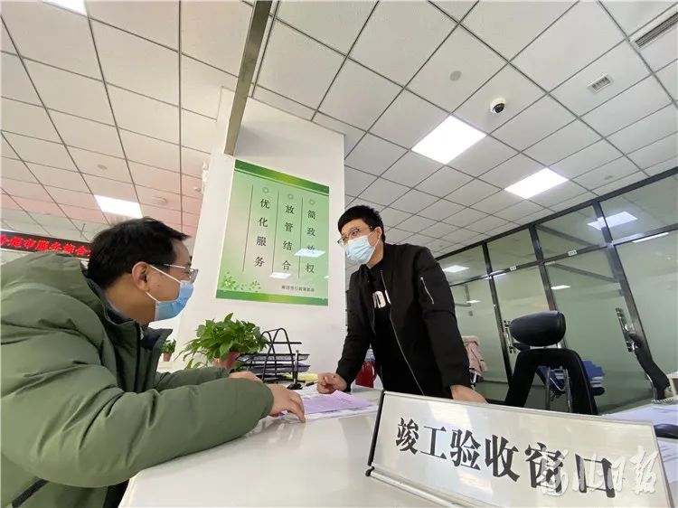图为廊坊市行政审批局工作人员为办事群众指导竣工验收事宜。相伟摄