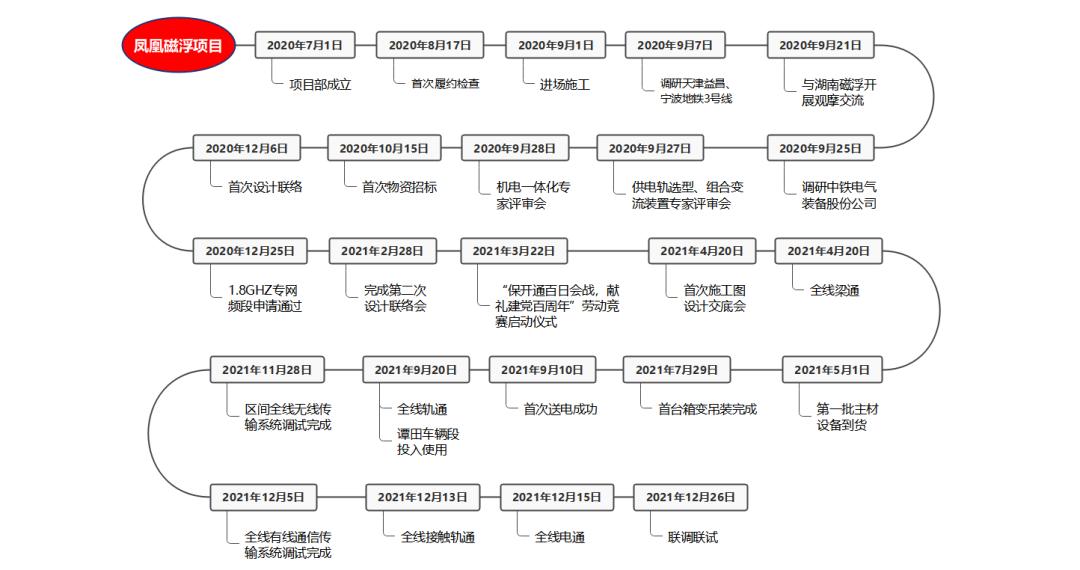 中国通号承担该项目通信、信号、供配电、建筑、机电设备、弱电工程6大类约30余个子系统项目总承包任务,截至目前,中国通号牵头完成各专业、各项子系统的全流程施工任务,为凤凰磁浮项目全线试运行和后续开通奠定了坚实基础。
