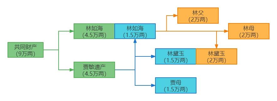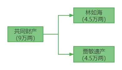 《民法典》第一千一百五十三条规定:“夫妻共同所有的财产,除有约定的外,遗产分割时,应当先将共同所有的财产的一半分出为配偶所有,其余的为被继承人的遗产。”即对共同财产9万两,由林如海分得夫妻共同财产的一半4.5万两,剩余一半作为贾敏的遗产进行继承。