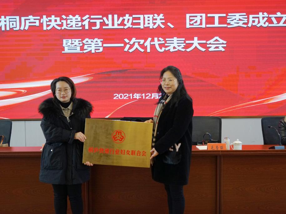县妇联党组书记、主席毛杏丽为桐庐县快递行业妇联授牌。