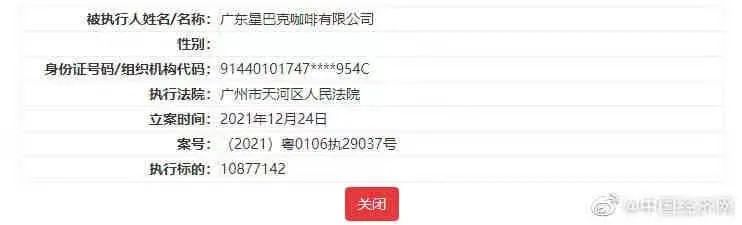 工商资料显示,近日,广东星巴克咖啡有限公司(下称广东星巴克)新增一条被执行人信息,执行标的1087万余元,执行法院为广州市天河区人民法院,关联案件为租赁合同纠纷。
