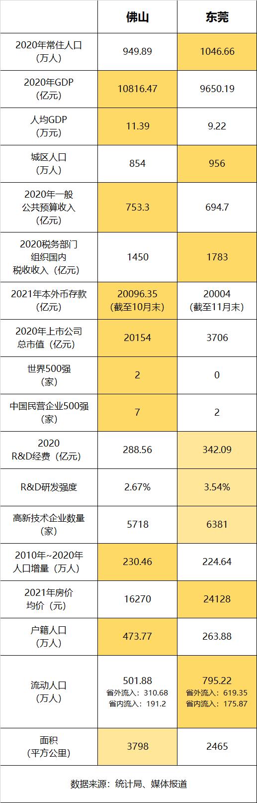而珠江西岸的佛山,在各项数据上先东莞一步。