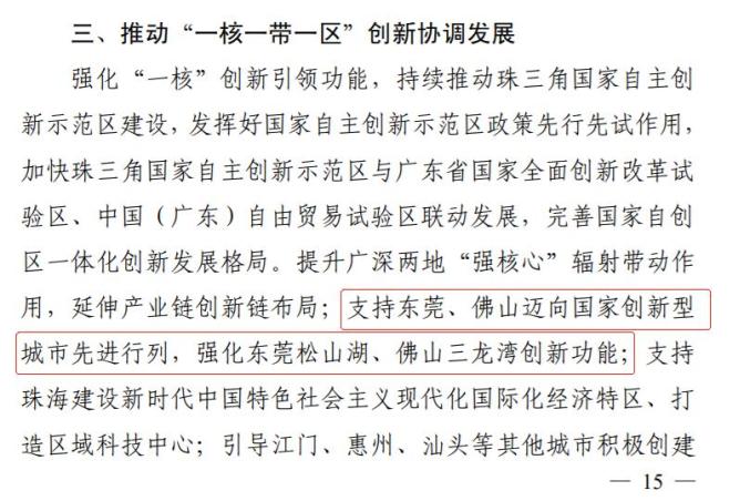 来看今年10月份发布的《广东省科技创新“十四五”规划》中,佛山东莞哪些片区被重点提及?