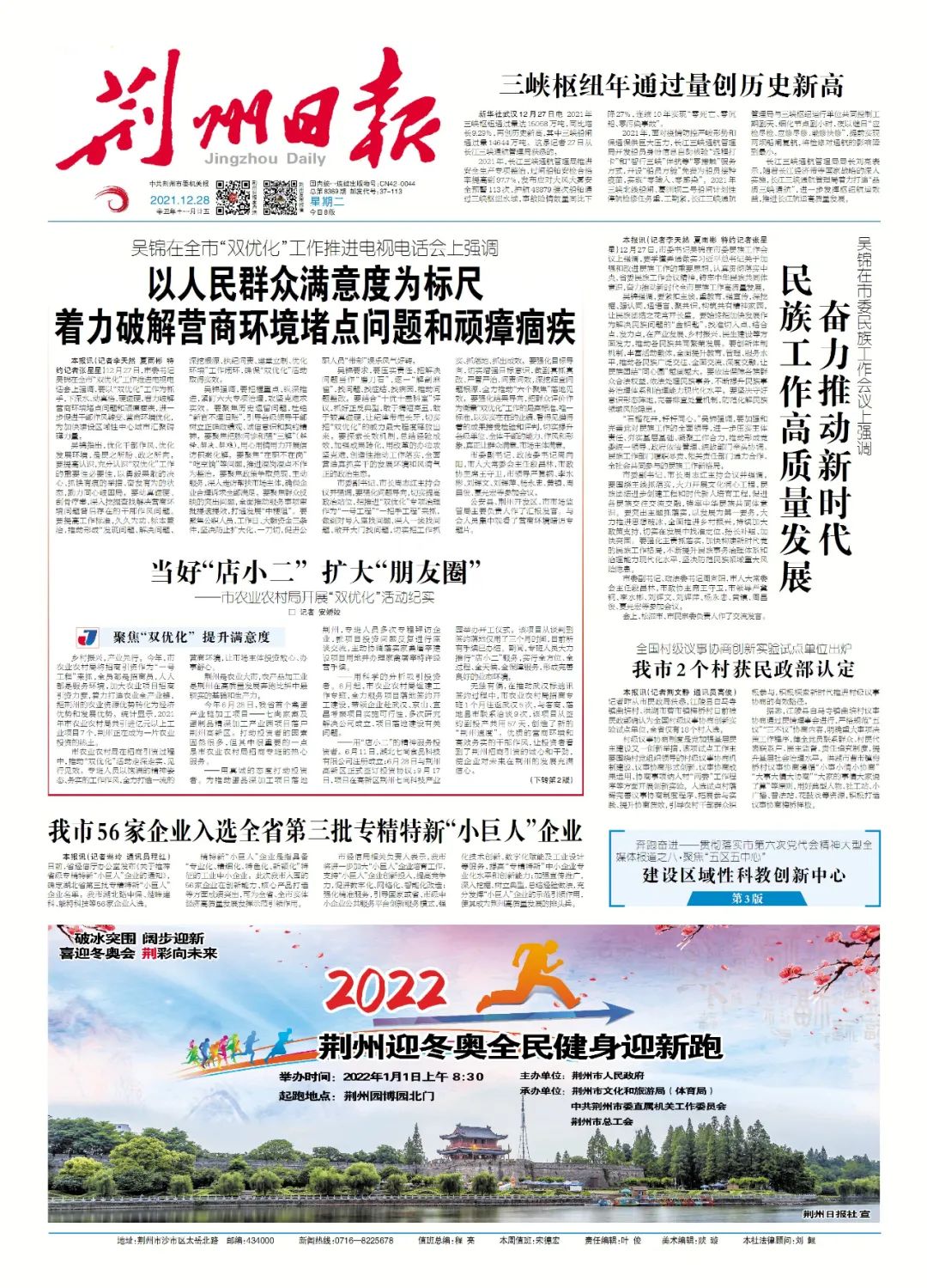今天是2021年12月28日,农历十一月廿五,星期二。天气多云,温度0℃~8℃。美好的一天从荆早报开始。