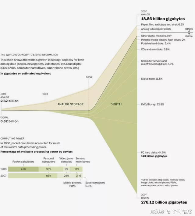 AI的背后是算法,算法需要大数据来训练。2007年,人们以一幅喇叭口图感叹,人类信息相比1986年的大爆炸。
