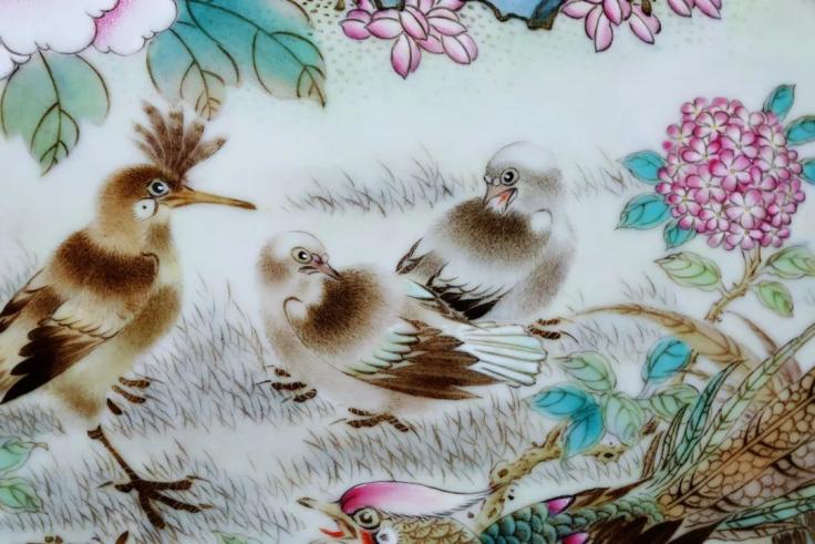 绘一只瓶子大致需30人同时作业,下笔十几万笔乃至几十万笔不可算,尤其翎毛处,完全达成动物生态。