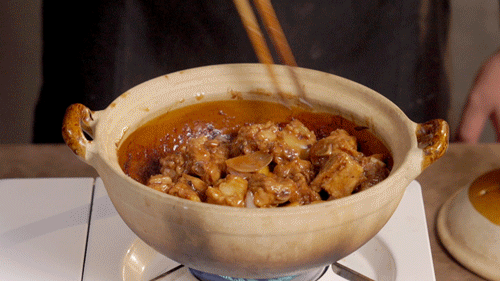 啫啫煲,广东话叫[jue jue]煲,模仿的是食物在砂锅里“滋滋滋滋”的声音,烟火气十足。