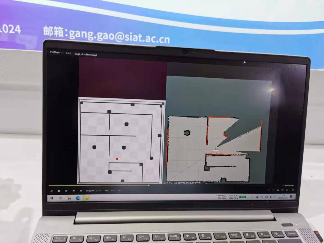 在视频演示中,工作人员将小车放在完全陌生的迷宫,小车从一个房间到另一个房间不断探索,通过车上的传感器,将整个迷宫的地图绘制出来。