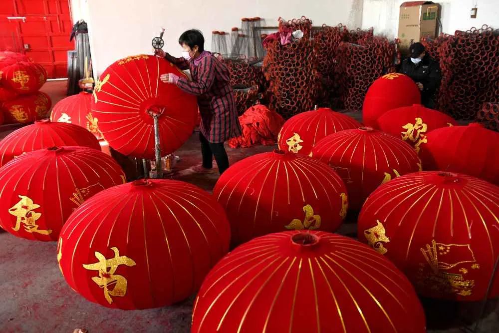 节前,河北省石家庄市藁城区屯头村宫灯生产厂家赶制灯笼供应节日市场。藁城宫灯历史悠久、产品丰富多样。