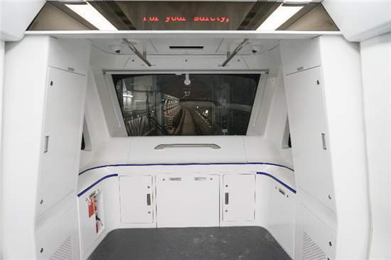 国际公共交通协会将列车运行的自动化水平划分为GoA0到GoA4五个等级,5号线一期拥有的就是最高等级GoA4。与传统列车相比,全自动列车最直观的区别就在于驾驶室是完全开放式的,隐藏操作台且不需要司机,与车身也无任何分隔,透过车头或车尾的玻璃,隧道内的全景一览而尽。