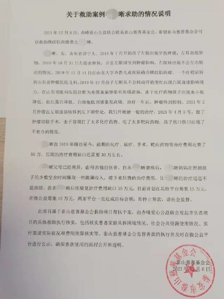 小晰的近况并不太好。11月26号开始化疗后,孩子呕吐,拉肚子,导致身体各项指标不正常,本来21天的化疗推迟到28天,孩子现在已经住院开始又一次的化疗药物配合靶向药物治疗,孩子左眼现在也只有光感,没有视力,加油孩子!我们一起为你助力!(微公益)