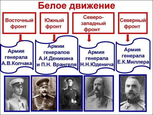 苏俄内战白军将领(从左至右)高尔察克、邓尼金、弗兰格尔、尤登尼奇、米勒