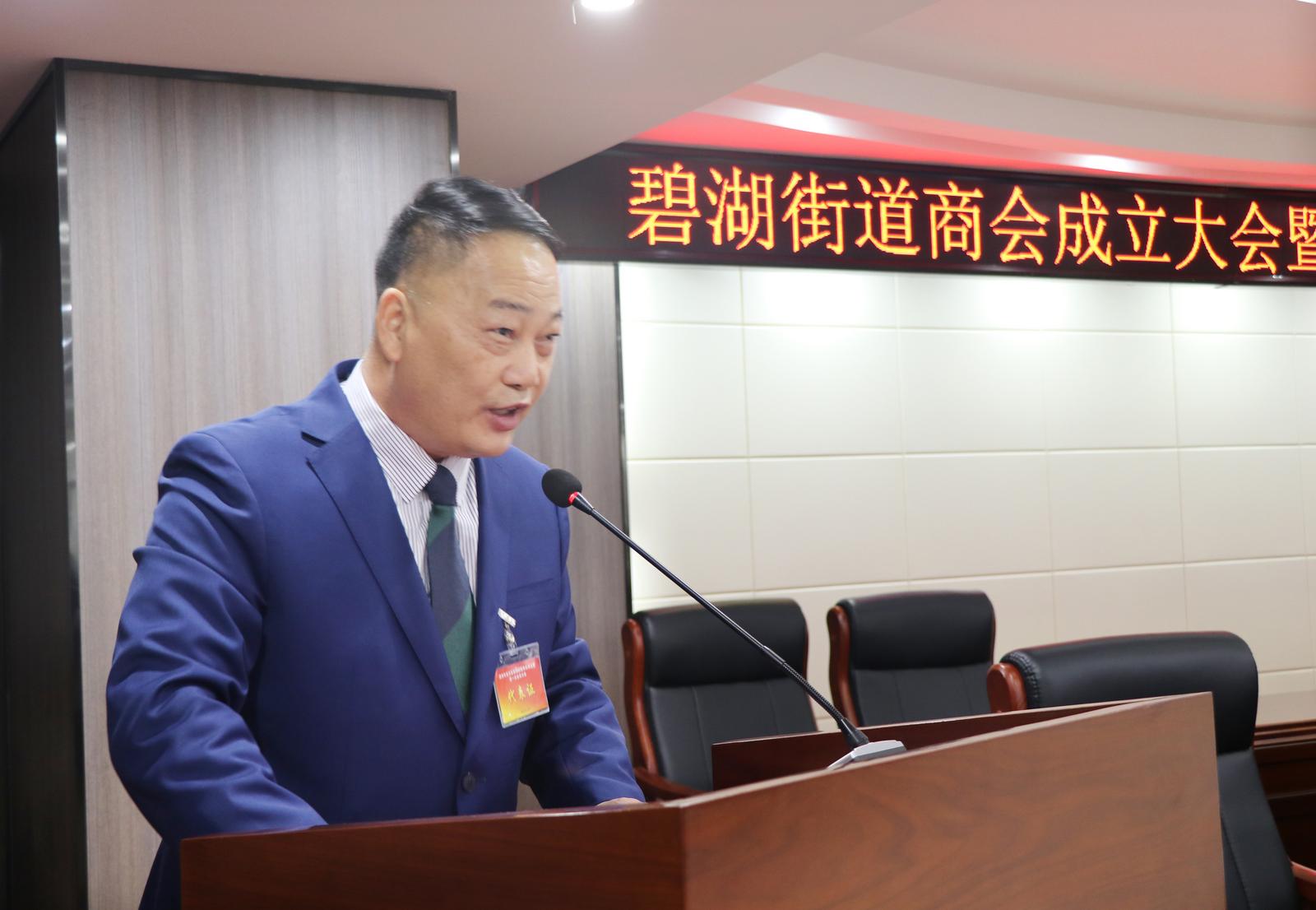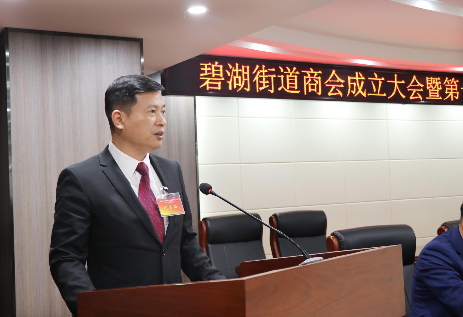 第一届碧湖街道商会会长吴亚海作任职表态。
