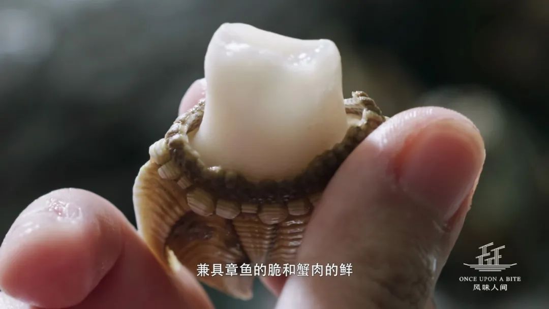 外壳粗糙丑陋,内里洁白脆韧,肉质兼具章鱼的脆和蟹肉的鲜,生长在潮汐作用最剧烈的悬崖峭壁。