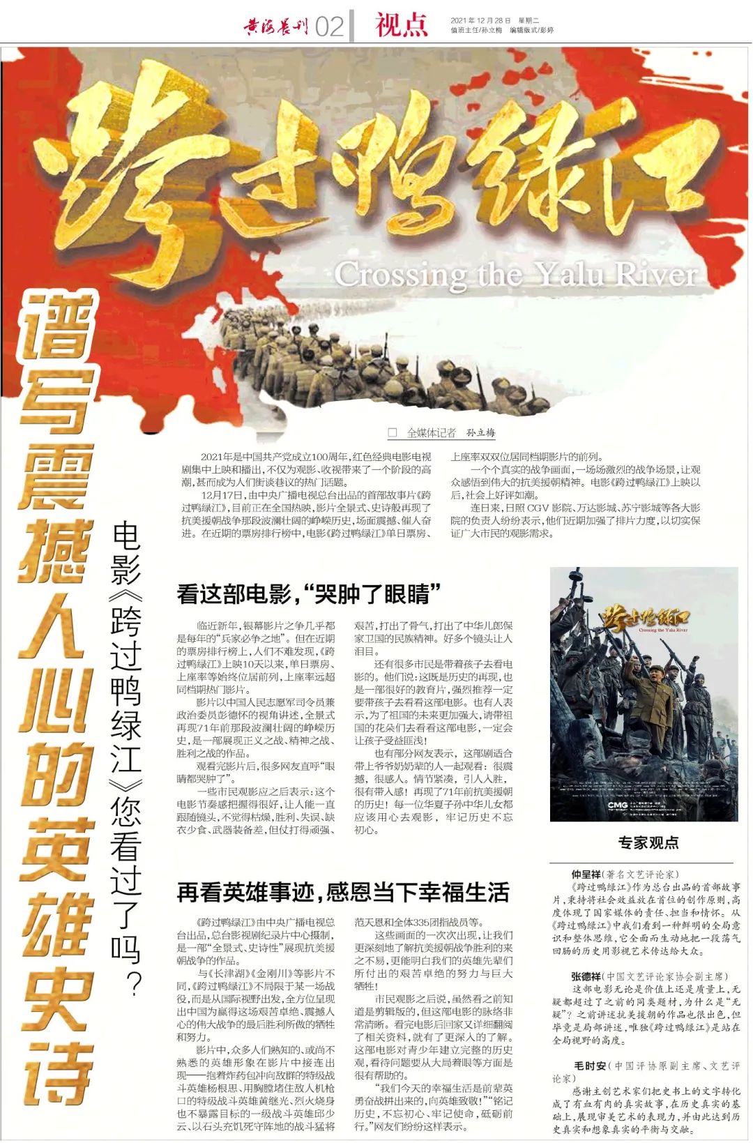 原标题:《《跨过鸭绿江》谱写震撼人心的英雄史诗!》