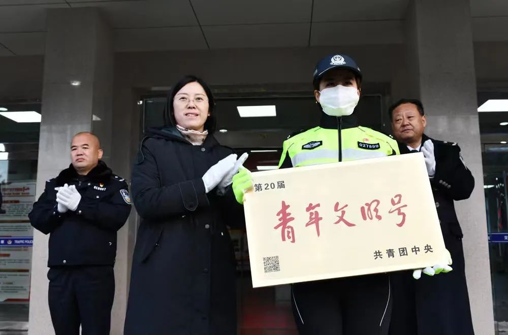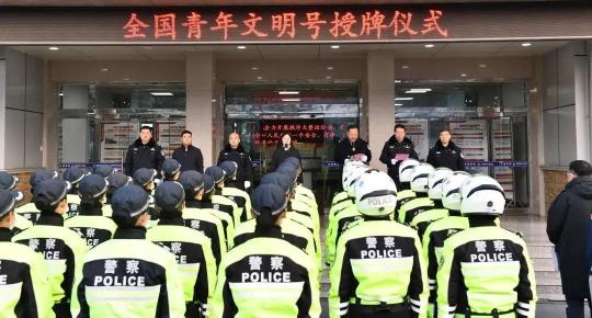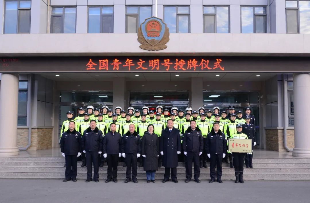 邯郸市交巡警支队渚河大队女子中队被全国共青团中央授予“全国青年文明号”荣誉称号,12月28日上午,全国青年文明号授牌仪式在渚河大队举行。