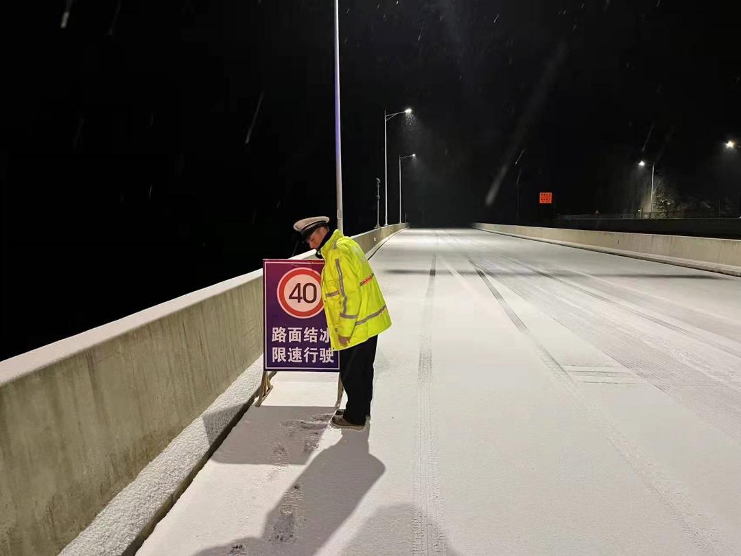 针对重点路段、重点时段,严防死守,毫不松懈。考虑到宣鹤高速多处路段地处高海拔、横风口易结冰,民警在冰雪来临后,第一时间将提前制作好的交通安全警示牌全投放于此类重点部位,同时在车流量大的时段,分出警力屯于各关键点,对过往车辆进行引导。无论白天深夜,保证在最危险的地方,都能看到那身“靓丽的黄色反光衣”。