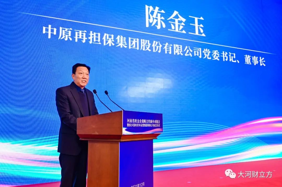 陈金玉在致辞中表示,中原再担保集团与新乡市政府携手合作成立政府性区域性担保公司,是深入贯彻河南省经济高质量发展战略的重要举措,也是全省政府性融资担保体系建设的又一创举,体现了“减量提质、一体多线”的体系建设布局,将为各地市政府性担保体系建设起到示范和引领作用。