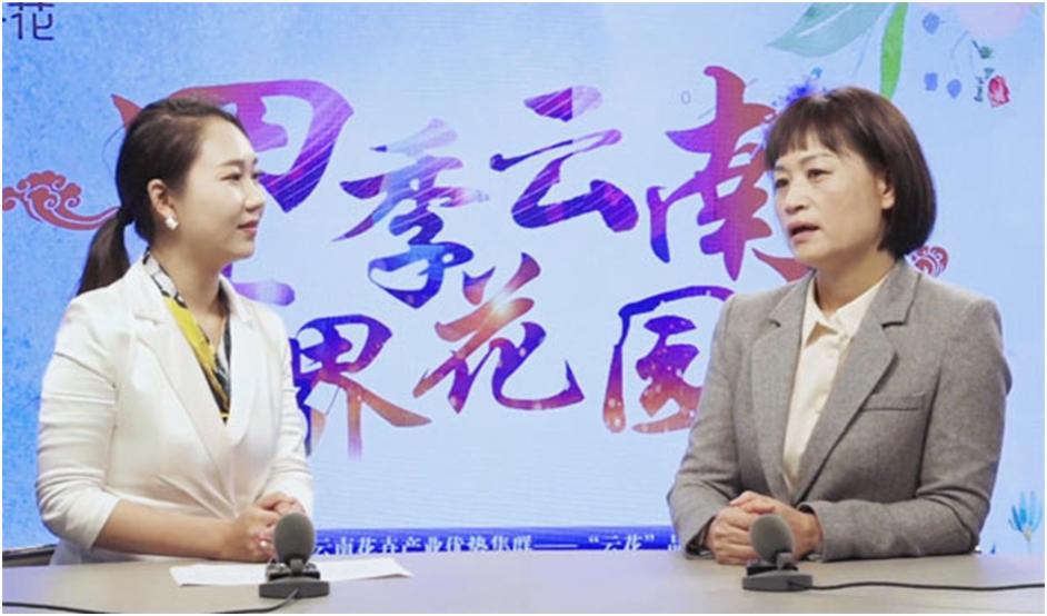 在访谈直播间,开远市人民政府副市长黄艳云介绍了开远市花卉“一县一业”示范创建和“云南花卉产业集群”项目建设工作。近年来,开远市从“云南是世界花卉育种的天堂,开远要做云花对接世界的窗口”的定位出发,紧紧抓住花卉“一县一业”示范创建和“云南花卉产业集群”项目建设机会,通过“政府搭建平台、园区提供服务、企业发挥作用、双绑联农带农”的方式,不断把花卉产业做优做大做强,让美丽经济之花竞相绽放。目前,开远全市花卉种植面积10.16万亩,其中鲜切花种植面积2.06万亩,鲜切花产量6.3亿支,全市花卉农业产值14.6亿元,加工产值33.6亿元。