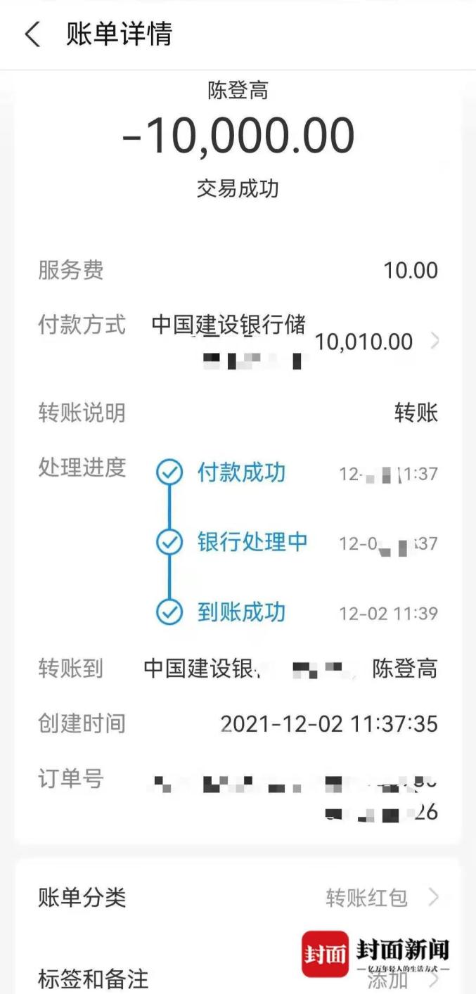 眉山东坡区一家鱼庄老板通过转账记录向记者证实,在“青花椒”诉讼案中,通过多次调解,他们向四川严睿律师事务所律师陈登高转账10000元。