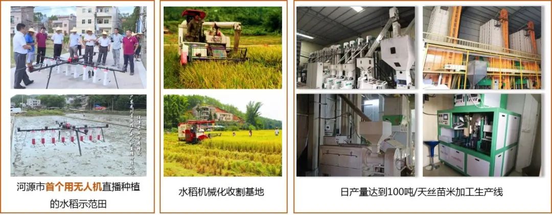 龙川拥有河源首个无人机直播示范基地、日产量达到100吨/天丝苗米加工生产线、国家级电子商务进农村示范县、龙川大米的高价值品牌等产业基础。