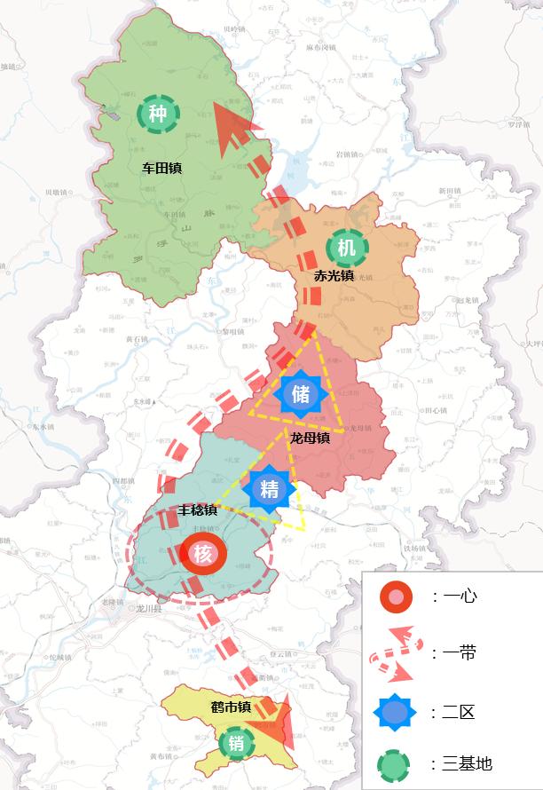 建立“一心、一带、二区、三基地”的空间结构,全面统筹布局生产、加工、研发、示范、服务、旅游等功能板块,因地制宜配套发展物流、电商等产业。