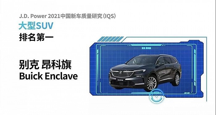 在J.D. Power“2021年新车质量研究(IQS)”中,昂科旗荣获大型SUV细分市场第一名,充分彰显其卓越的产品品质与实力。