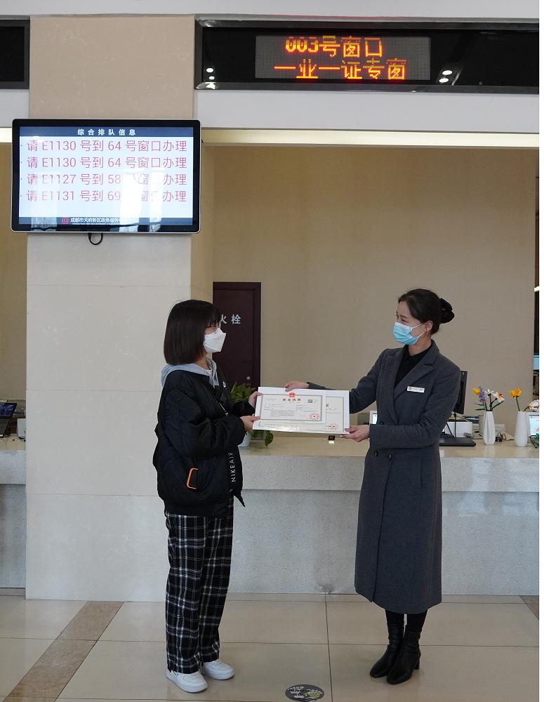 近日,成都花田美阅文化传播有限公司企业代表邓女士,在天府新区政务服务中心领取到了天府新区首张、归集了出版物经营许可等所有许可信息的营业执照。