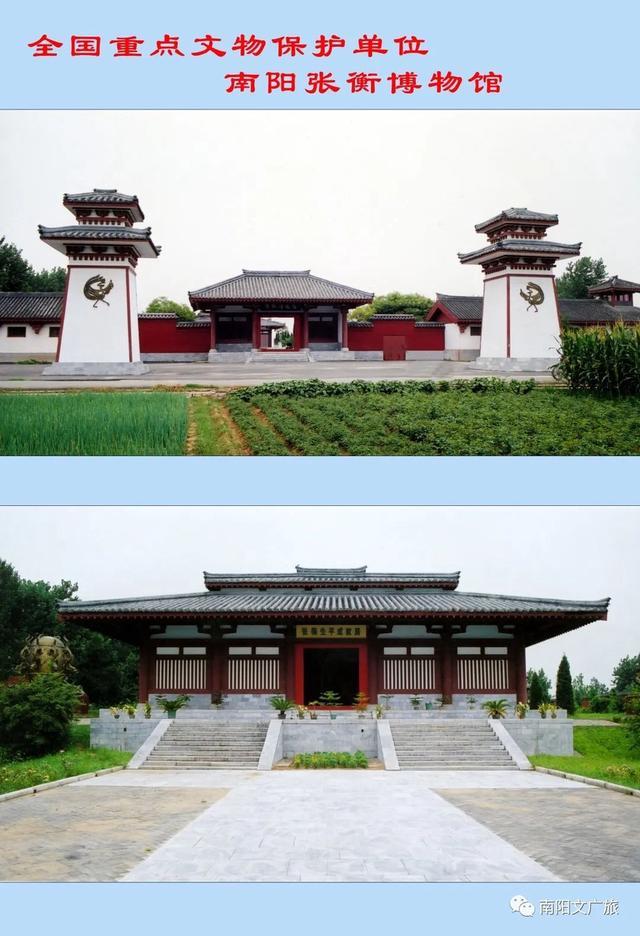 南阳市张衡博物馆,全国重点文物保护单位,是一座集文物保护、文献收集、科学研究、宣传教育的张衡专题博物馆,馆内陈列有张衡发明的地动仪、水运浑象、指南车、计里鼓车的仿真模型,可供游客操作演示。