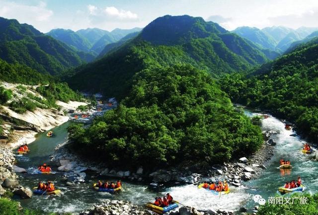 4A级旅游景区——鹳河漂流风景区,被誉为“中原第一漂”,是南阳市伏牛山世界地质公园组成部分,景区内有“九龙滩”“卧龙”“龙椅”“跳舞滩”等大小十八滩,与龙潭沟瀑布群、耍孩关峡谷、老界岭风景区等重要景点形成黄金旅游环线。