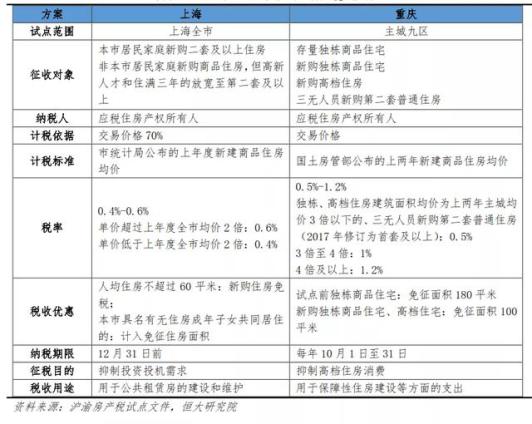 尽管房产税和房地产税有区别,但我们还是可以参考上海、重庆两个城市的试点经验。