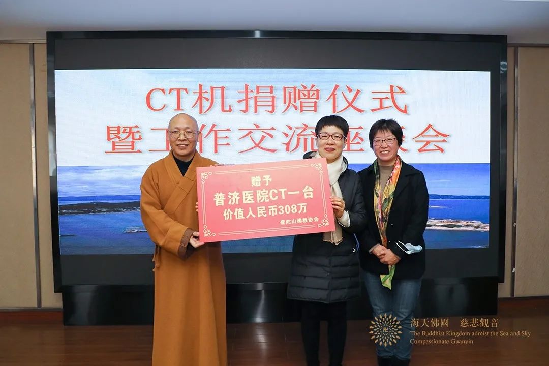 2021年12月28日,普陀山佛教协会普济医院举行CT捐赠仪式。受中国佛教协会副会长、普陀山佛教协会会长、中国佛学院普陀山学院院长、观音法界管理中心主任、普济禅寺方丈道慈大和尚委托,普陀山佛教协会副会长兼秘书长智宗法师参加捐赠仪式。