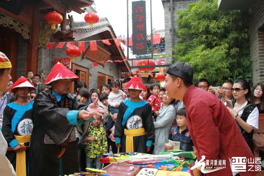 一条街区如何能“活”下去、“火”起来,必须要文化赋能。六尺巷整条街区以明清建筑风格为特色,以山西传统民俗、文化、美食、创意集市等为载体,汇集了国家级非物质文化遗产上党八音会、上党梆子、泽州四弦书,省级非物质文化遗产泽州对鼓、泽州鼓书、泽州打铁花以及多项地方特色产品和业态,使街区更富魅力与活力。图为街区“行进时”互动实景演绎《县老爷巡街》。