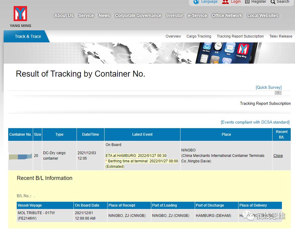 这种信息一般比较简单、孤立,用于必要的商业活动,不会涉及到货物数据和财务信息。公开指对相关方公开,比如我是某票货的发货人,我想知道我的箱子现在在哪里,就可以根据我所掌握的集装箱到承运的船公司阳明船公司网站上,查出这个箱子在MOL TRIBUTE 这条船上。