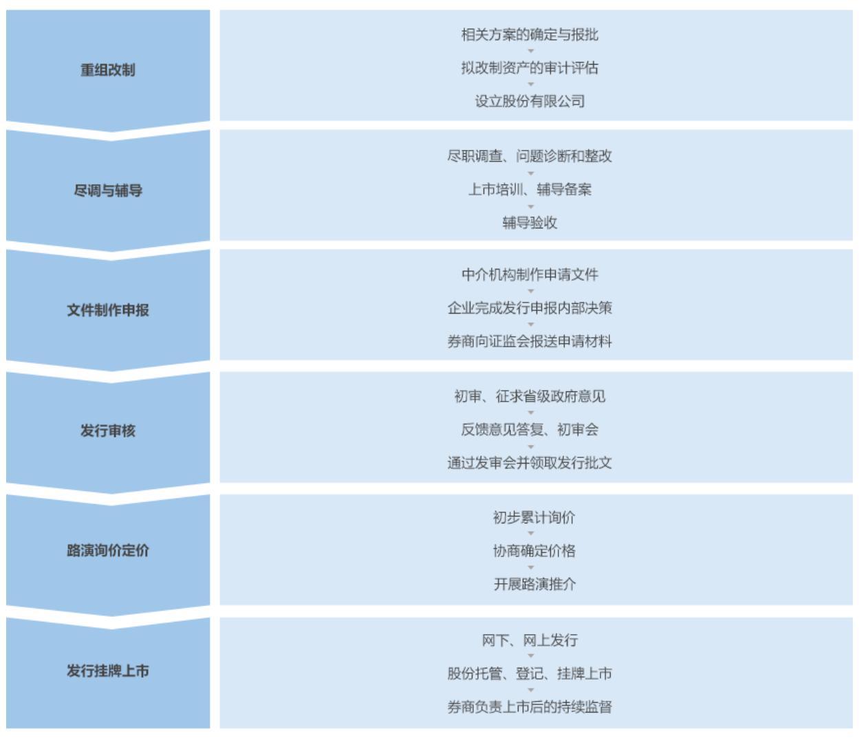一般情况下,国有企业自筹划改制到完成发行上市总体上需要3年左右,主要包含重组改制、尽职调查与辅导、申请文件的制作与申报、发行审核、路演询价与定价及发行与挂牌上市等阶段。如果企业各方面基础较好,需要整改的工作较少,则发行上市所需时间可相应缩短。