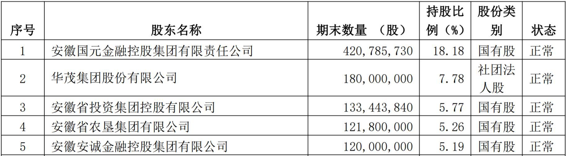公司实际控制人为安徽国元金融控股集团有限责任公司。持股比例超过5%的大股东如下: