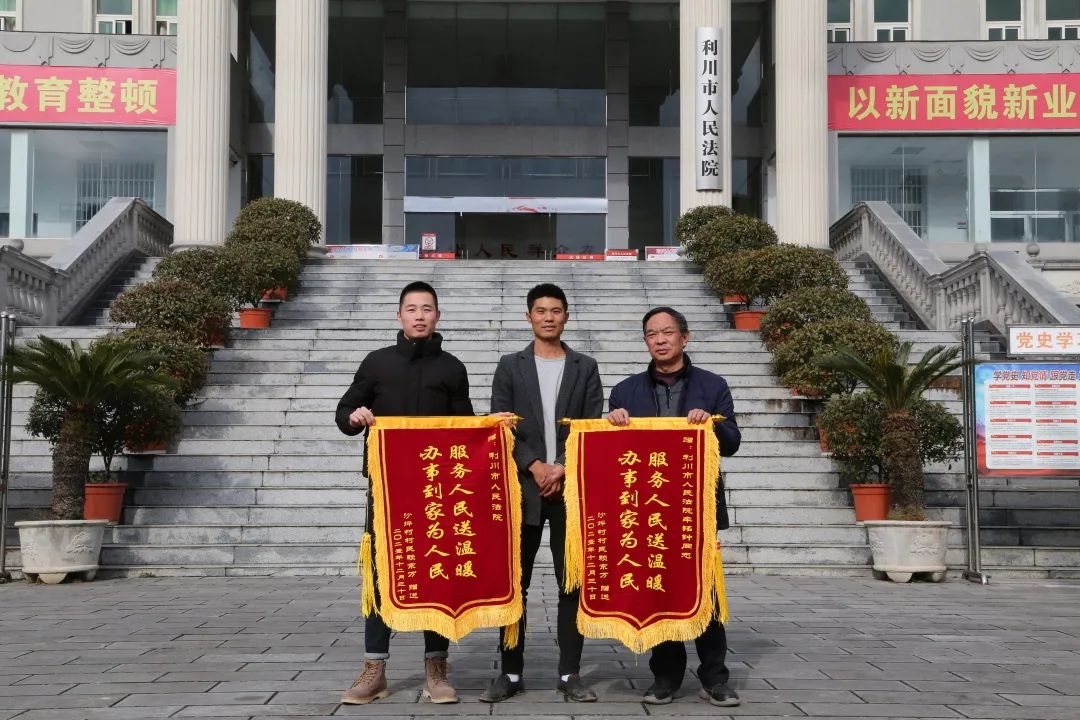 12月29日,忠路镇沙坪村村民赖宗方给利川市法院送来两面锦旗,感谢驻村干警对其提供的帮助。