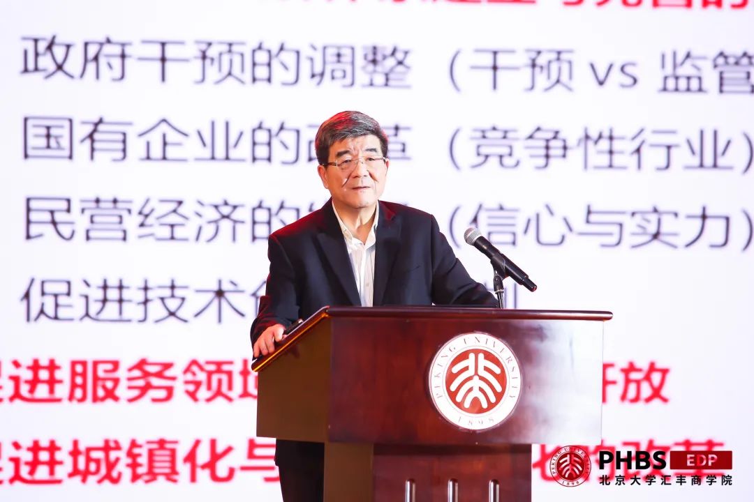 北京大学校务委员会副主任、汇丰商学院创院院长海闻在题为《中国经济:现状与未来》的演讲中,从“目前影响中国经济的主要因素”“中国经济的短期状况”和“中国经济长期发展的机遇和挑战”三个方面做了介绍,并就“人口老龄化”“共同富裕”“中美关系”等经济热点分享了自己的思考。他指出,国际大变局以及中国国内的变化,使得中国经济在短期以及中长期都面临许多不确定性,给企业也带来许多新的挑战。但同时,中国经济仍然处在历史的上升期,存在很多发展机遇。面对挑战和机遇,我们别无选择,只有做好自己。海闻教授强调,各位企业家要坚持市场化、国际化、法制化,努力学习,追求卓越,积极进取,勇担责任,为中华民族的伟大复兴,为世界和平和人类发展作出贡献。