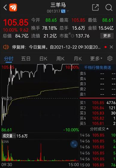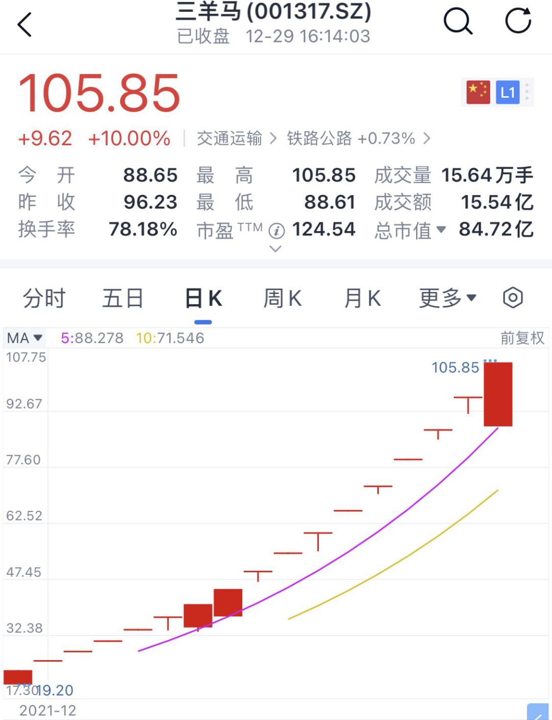 自2021年11月30日上市以来,三羊马股价一路攀升。截至12月21日,已经连续16个交易日涨停。12月21日晚,监管终于出手,三羊马公告自12月22日开市起停牌,自披露核查公告后复牌。