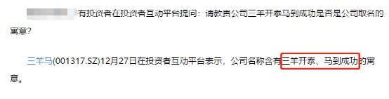此前在投资者互动平台上,三羊马称公司得名来自于“三羊开泰马到成功”。