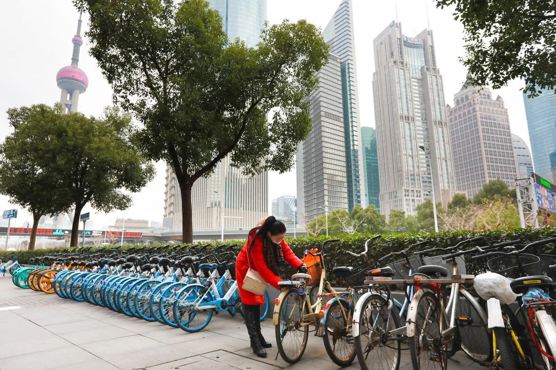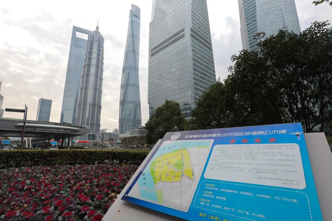 此外,位于上海中心裙楼外墙处的多块广告屏,也在滚动播出各类公益广告;街边绿地中,“圆梦新时代,文明新浦东”的景观小品和谐地融入周边环境……周边市民游客或是受到公益广告感召,充分践行文明新风尚——非机动车整齐有序地停放在划线区域内,过马路严格按照红绿灯指示,在斑马线内通行。